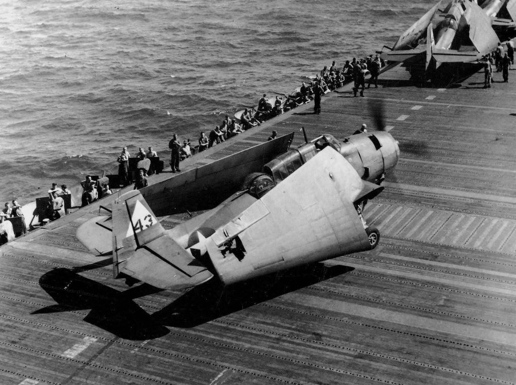 당시 엔터프라이즈 주변을 맴돌며 CAP(Combat Air Patrol, 전투 공중초계)중이던 전투기가 있었지만 항공관제관의 실수로 인해 번번이 적기를 놓치게 되었고 태평양 전쟁 역사상 최악의 방공망 vs 전투기의 싸움이 시작되는데, 폭탄 두발을 얻어맞았지만 엔터프라이즈는 살아남기 위한 격렬한 회피 운동을 하여 지근탄 두발과 어뢰 아홉 발을 회피하고, 전함 사우스다코타를 비롯한 호위 함정의 지원과 아군 화망에 격추 되는 것을 각오하고 진입하여 적기를 격추한 아군 전투기의 활약 그리고 스콜로 인한 유기적이지 못한 적함재기 공격에 엔터프라이즈는 구사일생 할 수 있었다.
