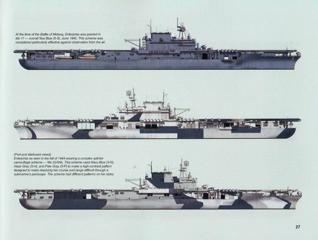 [초기형의 엔터프라이즈호는 회색의 함체에 나무색 그대로의 갑판색을 가지고 있었으나 이는 하늫에서 너무나 발견하기 쉬운 칼러였다]