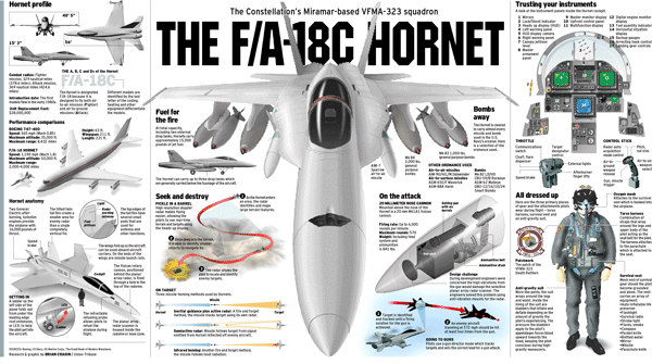 [F/A-18C 형 호넷은 1991년 걸프전을 통해 화려하게 데뷔한 이래 아프라기스탄전과 코소보전 그리고 최근의 이라크전에도 참전하여 혁혁한 공을 세운 기체로 이만큼 실전 운영을 확실하게 한 기체는 F-16 정도일 정도로 신뢰성이 뛰어난 기체이다] |