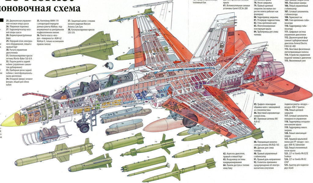 [호넷의 다양한 무장운영 능력은 미해군 어느 전투기도 따라올수 없는 강점중 하나이다. 최신형의 F/A-18E/F형의 경우 8톤의 무장탑재력을 가진다]