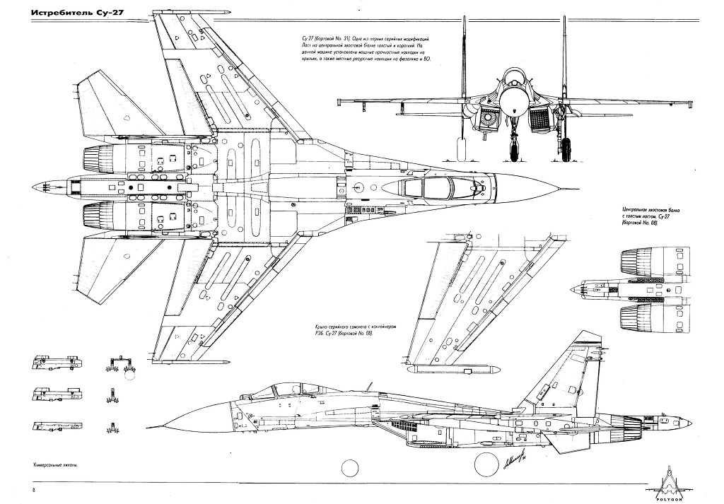 [Su-27 의 개발형태를 잘 보여주는 도면.. 맨위부터 프로토 타입인 T-10,밑으로 양산형을 그린 도면이다]