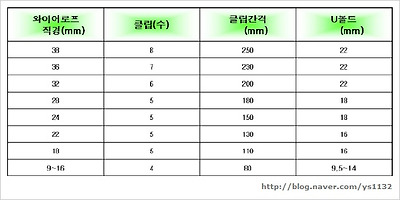 낙하 와이어로프 클립체결 작성자최용선|작성시간07.01.07|조회수1,773 목록 댓글 0 글자크기 작게가 글자크기 크게가 *와이어로프 직경별 클립수 및 간격 다음검색 현재 게시글 추가 기능 열기 북마크 공유하기 신고 센터로 신고 댓글 댓글 0 댓글쓰기 답글쓰기 댓글 리스트