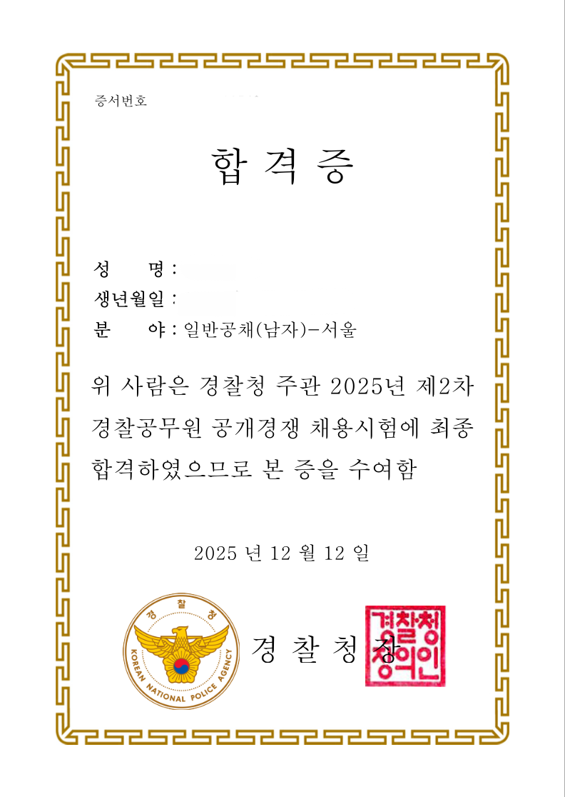 최종합격 했습니다! 작성자pkemms|작성시간25.12.26|조회수52 목록 댓글 2 글자크기 작게가 글자크기 크게가 다른 과목에서 조금 절었지만 헌법에서 2개 틀린 덕분에 합격할 수 있었습니다찾아뵀는데 웃으면서 맞아주셔서 감사합니다! 다음검색 현재 게시글 추가 기능 열기 북마크 공유하기 신고 센터로 신고 댓글 댓글 2 댓글쓰기 답글쓰기 댓글 리스트 작성자윤우혁 | 작성시간 25.12.26 축하 합니다 주소 이름 폰번호 남겨주세요 해당 댓글은 작성자와 운영진만 볼 수 있습니다. 댓글 전체보기