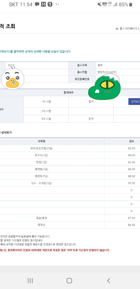 앞서 밝혔다시피 노베이스에 가까운 상태였고(한국사 빼고 모든 과목 처음 시작) 토익 역시 705점으로 턱걸이 였지만 윤우혁선생님의 방법론에 따라 충실히 양을 줄여나갔고 100점이 아닌 합격선 이상을 목표로 공부한 결과 운 좋게도 합격이라는 결과를 누릴 수 있었음