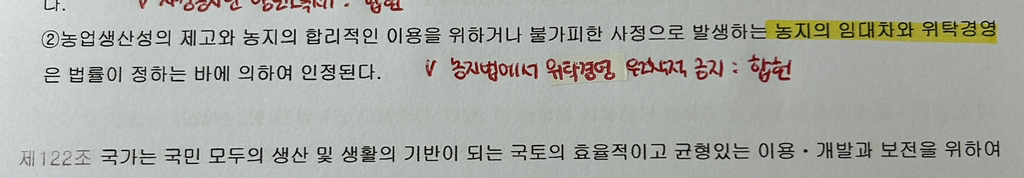 조문특강 질문입니다 작성자오인턴|작성시간24.02.17|조회수199 목록 댓글 1 글자크기 작게가 글자크기 크게가 농지법에서 임대차 말고 위탁경영 원칙적 금지가 합헌인 것 맞나요 ??? 다음검색 현재 게시글 추가 기능 열기 북마크 공유하기 신고 센터로 신고 댓글 댓글 1 댓글쓰기 답글쓰기 댓글 리스트 작성자윤우혁 | 작성시간 24.02.17 합헌 입니다 댓글 전체보기