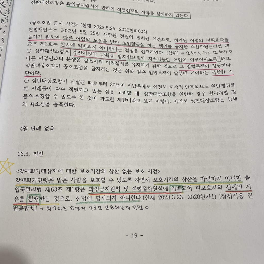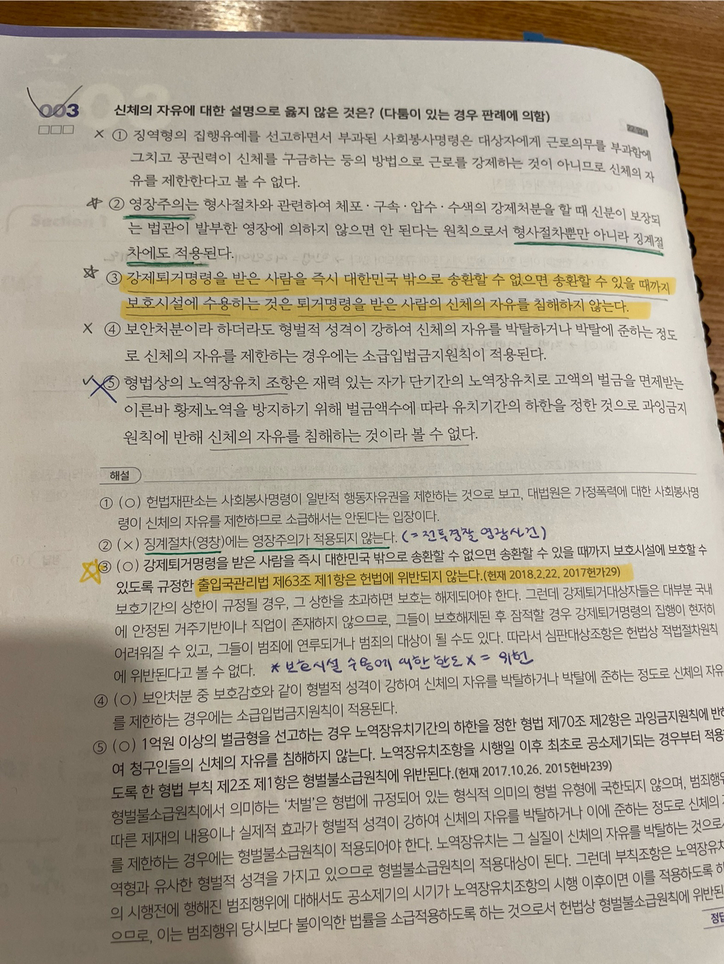 23년 3월에 나온 강제퇴거명령을 받은 사람에 대한 보호의 상한을 마련하지 않은 것(위헌)과 기출문제집 290쪽 3번 선지의 강제퇴거명령을 받은 사람을 즉시 송환할 수 없을 시 송환이 가능할 때까지 보호시설에 수용하는 건 서로 다른 판례일까요? 아니면 기출문제집에 있는 판례가 최판에 소개된 내용으로 변경된 건가요? 알려 주시면 감사하겠습니다! (별개의 판례라면 두 가지 다 암기해야 되는 걸 텐데... 그 차이가 뭔지 잘 모르겠습니다 ㅠㅠ)