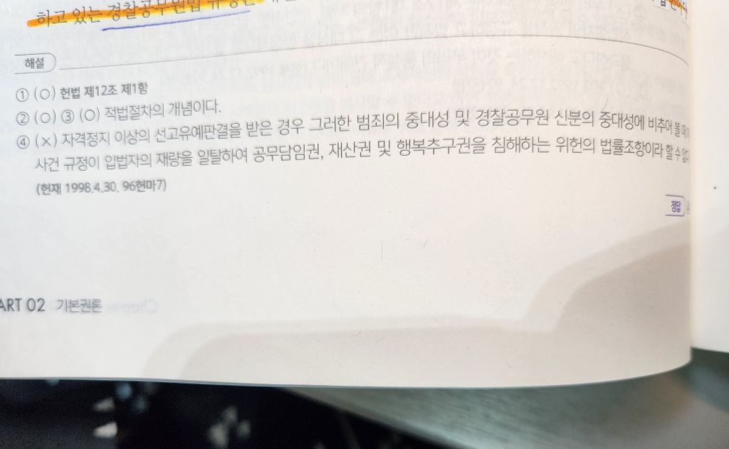 공무담임권질문입니다 작성자딱붙는딱풀|작성시간24.02.20|조회수87 목록 댓글 1 글자크기 작게가 글자크기 크게가 경찰공무원법상 당연퇴직규정에서 336쪽 보기 4번은 위헌이 아니라 하고 589쪽 보기 1번은 위헌이라 뜨는데 같은 조항을 말하는거 같은데 왜 전자는 합헌이고 후자는 합헌인건가요? 다음검색 현재 게시글 추가 기능 열기 북마크 공유하기 신고 센터로 신고 댓글 댓글 1 댓글쓰기 답글쓰기 댓글 리스트 작성자윤우혁 | 작성시간 24.02.21 1번은 모든 범죄를 포괄한다는 단서가 있습니다 댓글 전체보기