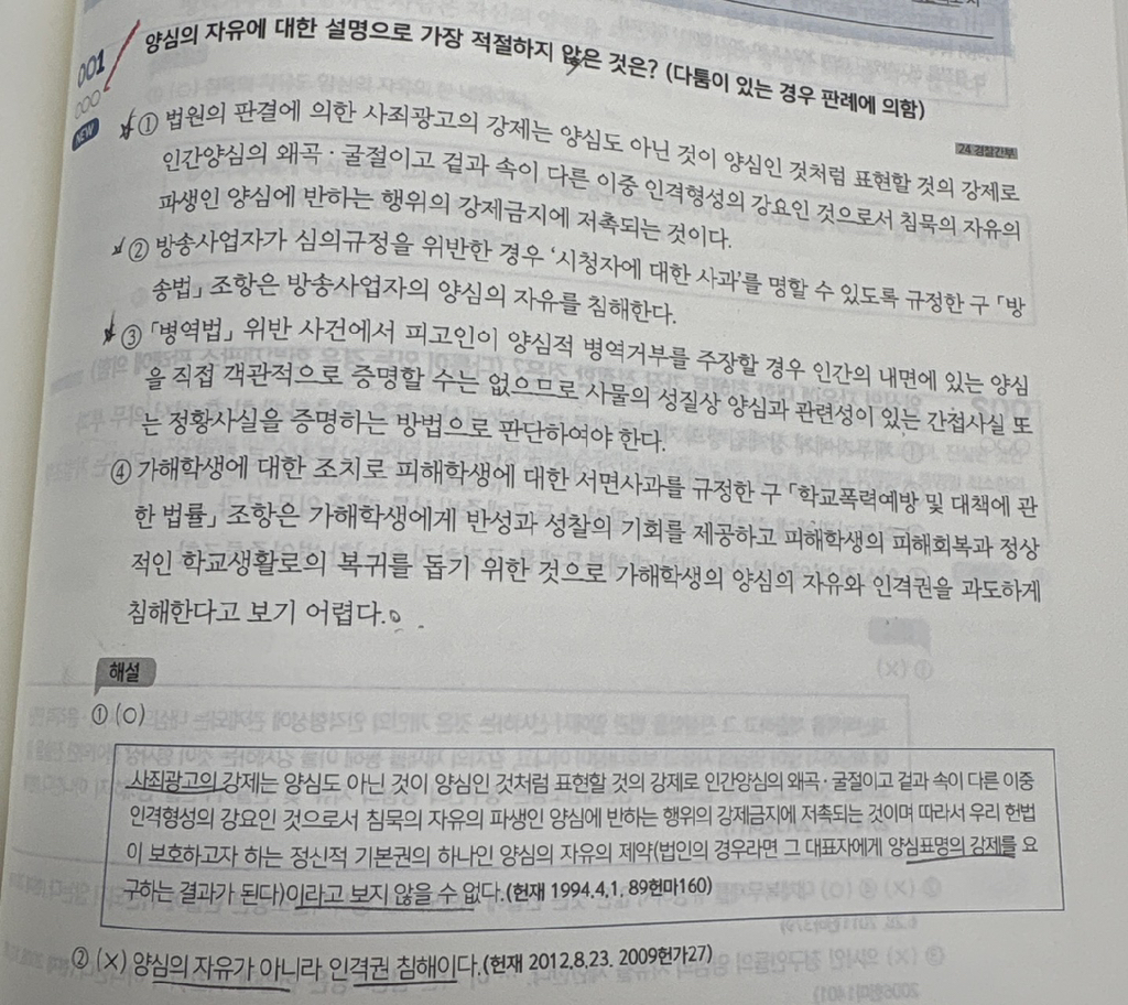 양심의 자유 질문입니다 작성자짱현|작성시간25.12.23|조회수20 목록 댓글 1 글자크기 작게가 글자크기 크게가 1번 2번은 둘 다 사죄 사과를 강제 하는건데 왜 2번은 인격권 침해 인가요? 다음검색 현재 게시글 추가 기능 열기 북마크 공유하기 신고 센터로 신고 댓글 댓글 1 댓글쓰기 답글쓰기 댓글 리스트 작성자윤우혁 | 작성시간 25.12.24 1은 90년대에 인격권 을 잘 몰라서 양심의 자유로 판단했고 2는 2000년대에 인격권을 잘 알게되서 그렇습니다 댓글 전체보기