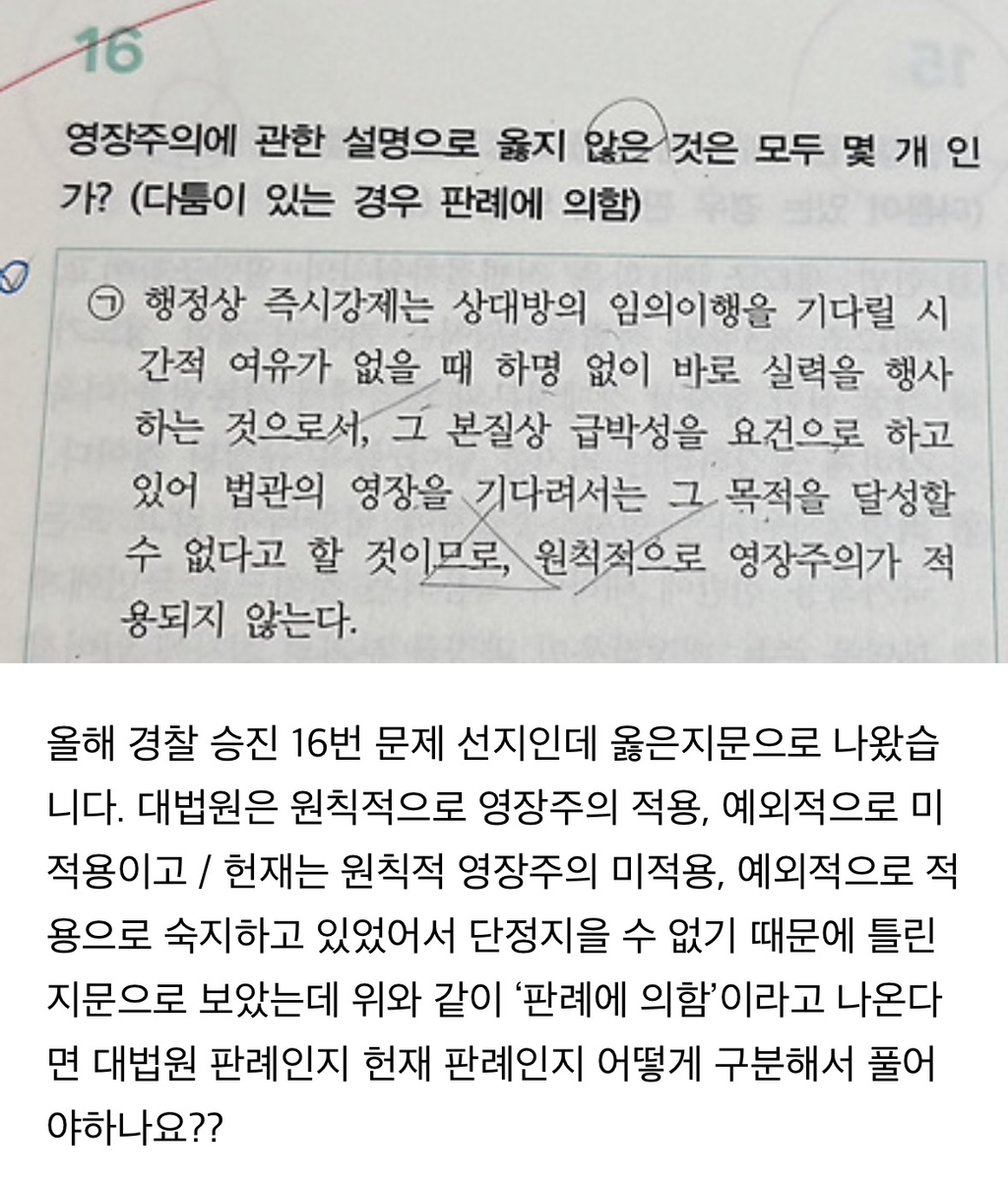작성자윤우혁 작성시간 25.12.18 그 문제는 헌재 판례를 묻는 겁니다