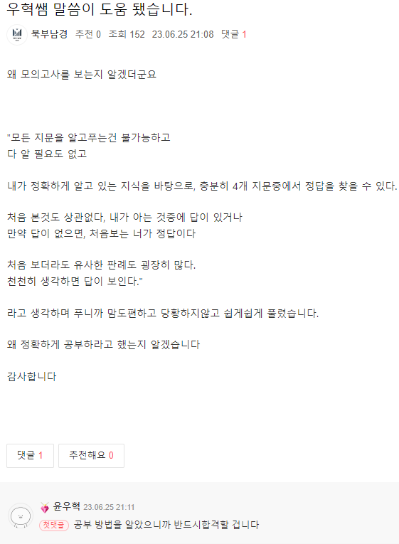그것을 윤우혁쌤한테 배운 제자라면 느껴야한다고 생각합니다.