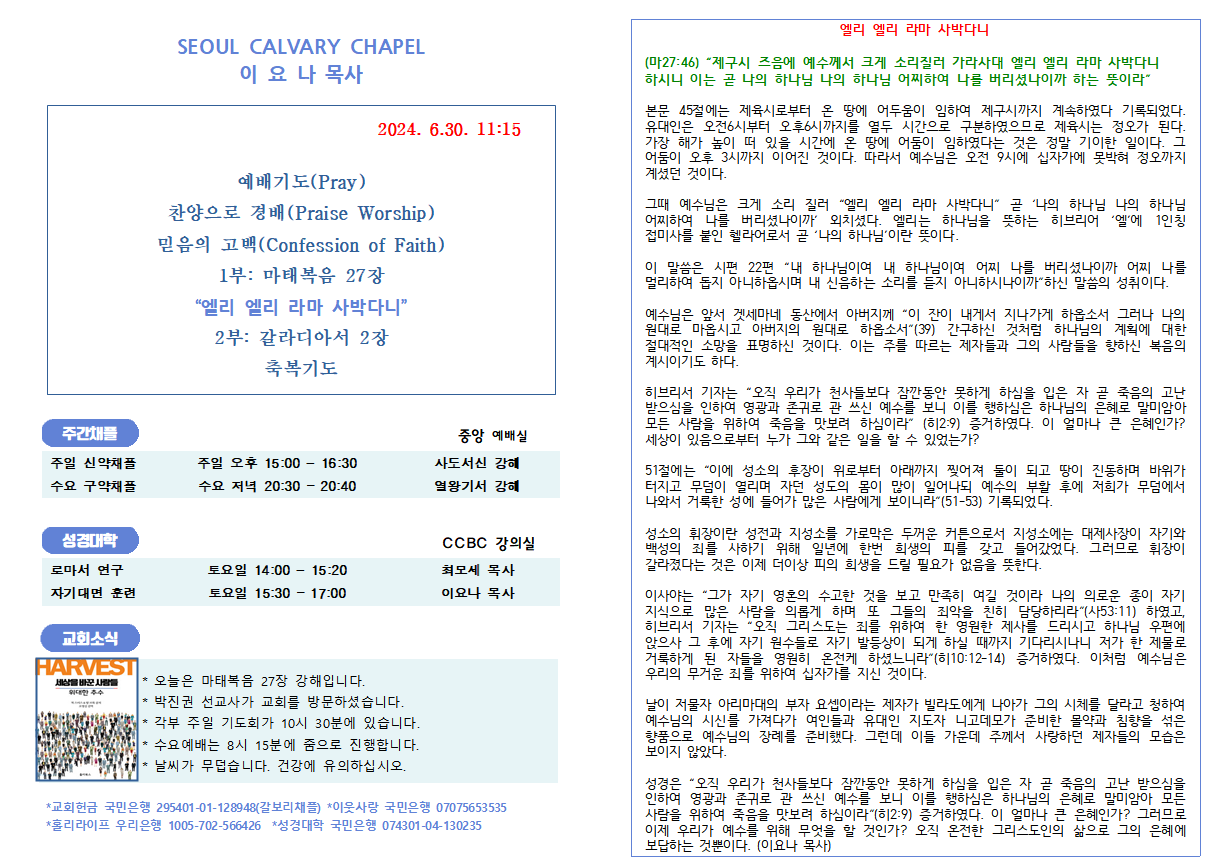 (마27:46) “제구시 즈음에 예수께서 크게 소리질러 가라사대 엘리 엘리 라마 사박다니 하시니 이는 곧 나의 하나님 나의 하나님 어찌하여 나를 버리셨나이까 하는 뜻이라”