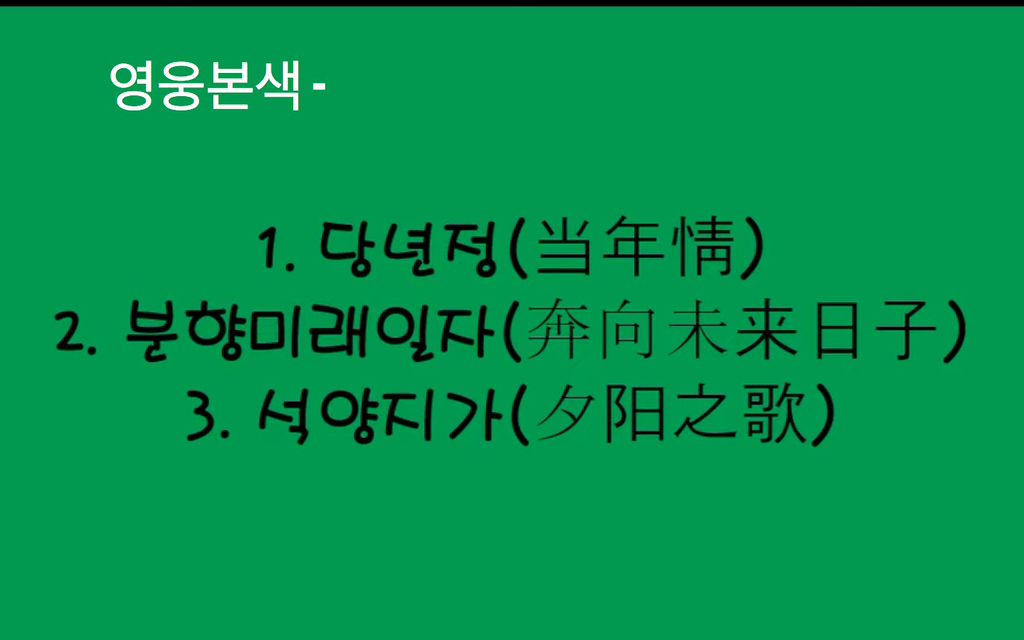 [중국노래] 한글가사/ 해석 /자막/병음 영웅본색(英雄本色) ost 모음 - 링크허용중 참고.