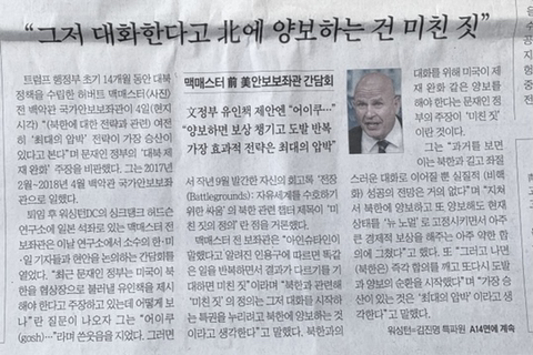맥매스터 "그저 대화한다고 양보하는 것 미친 짓, 가장 효과적 전략은 최대 압박" // 이동복 "정의용, 김정은 비핵화 의지만 강조, 전제조건 뺐다"