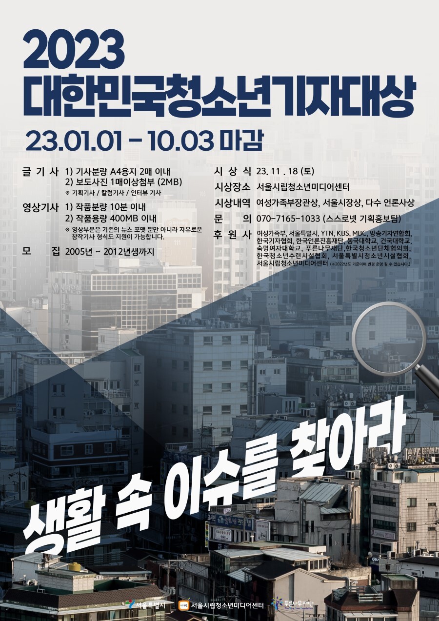 #대한민국청소년기자대상 #청소년공모전 #청소년기자 #서울특별시 #시립청소년미디어센터 #저널리스트 #공모전사이트 #대회 #공모전 #콘코 #콘테스트코리아