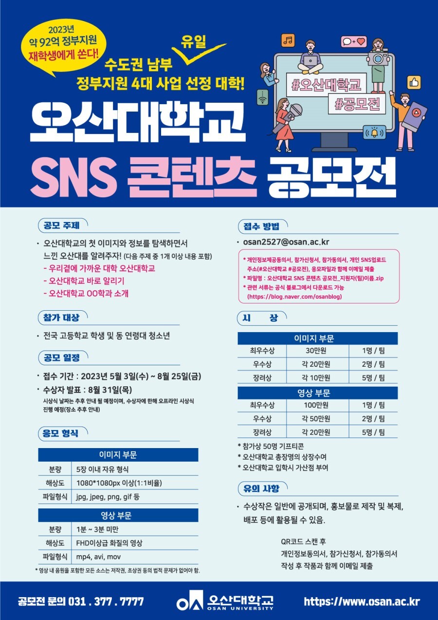 #오산대학교고등학생SNS콘텐츠공모전 #오산대학교 #SNS콘텐츠공모전 #콘텐츠공모전 #청소년공모전 #고등학생공모전 #공모전사이트 #공모전