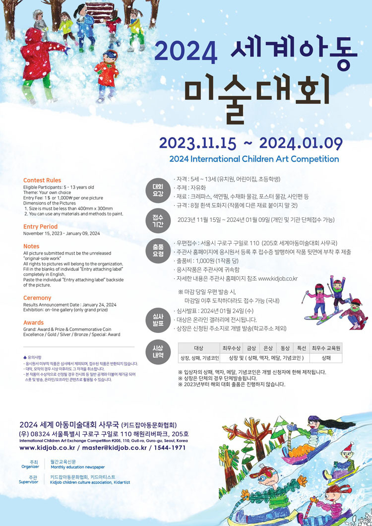 - 참가등록 : www.kidjob.co.kr (2024 세계아동미술대회 사무국)