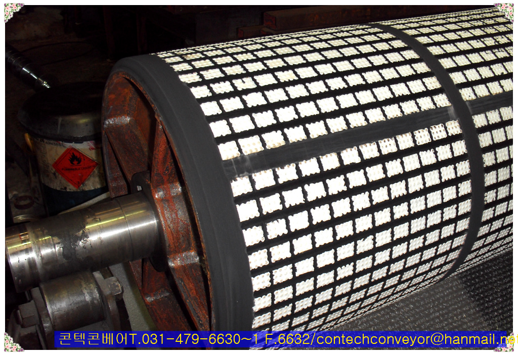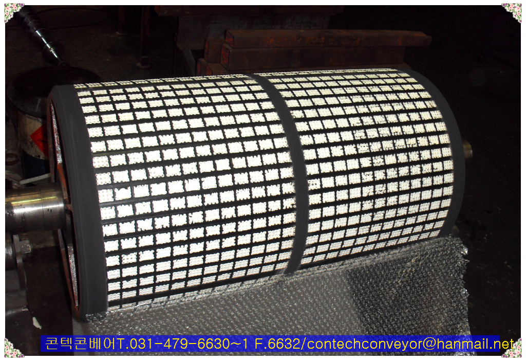 [이송용풀리]세라믹 드럼 코팅, 세라믹 풀리 코팅, 세라믹 풀리 래깅[세라믹 칩(CERAMIC CHIP) + 고무(RUBBER) 코팅
