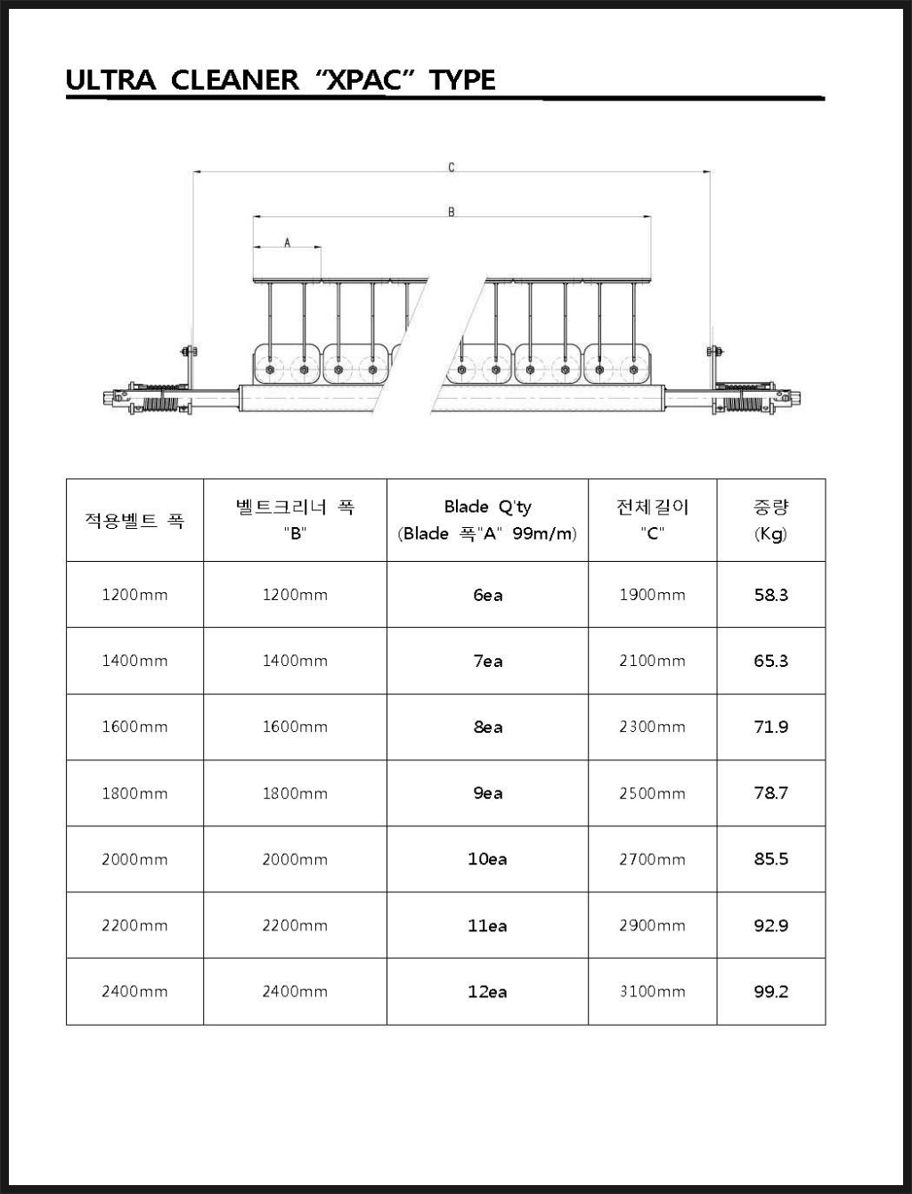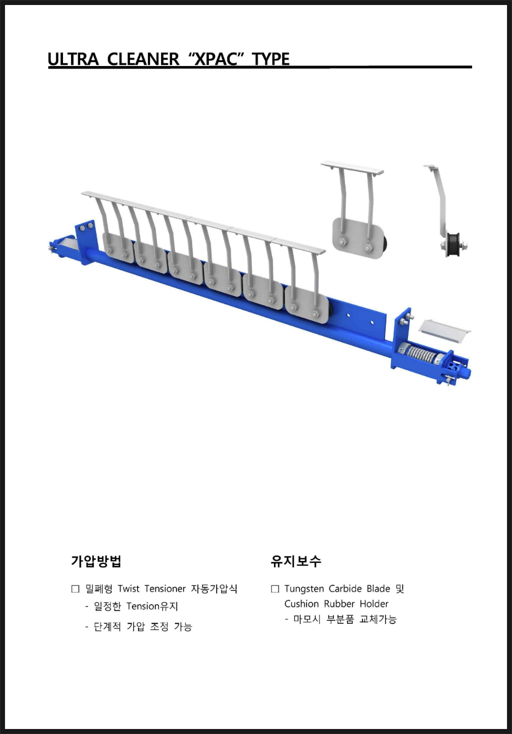 [국내제작품]울트라 벨트크리너/벨트 크린너/BELT CLEANER/1차 벨트크리너/교체가 편리한 벨트크리너/UC-XPAC TYPE