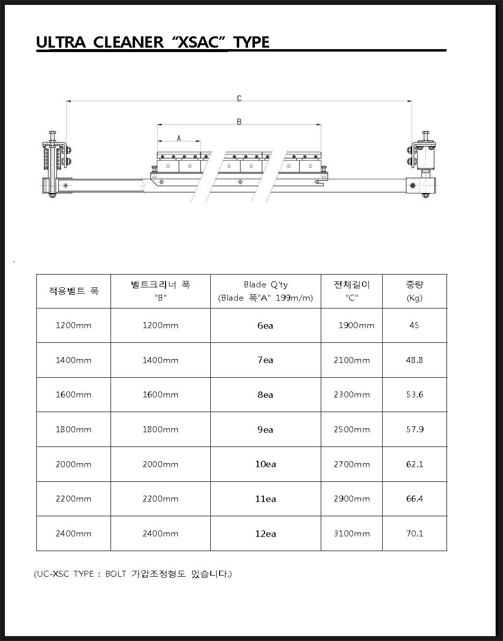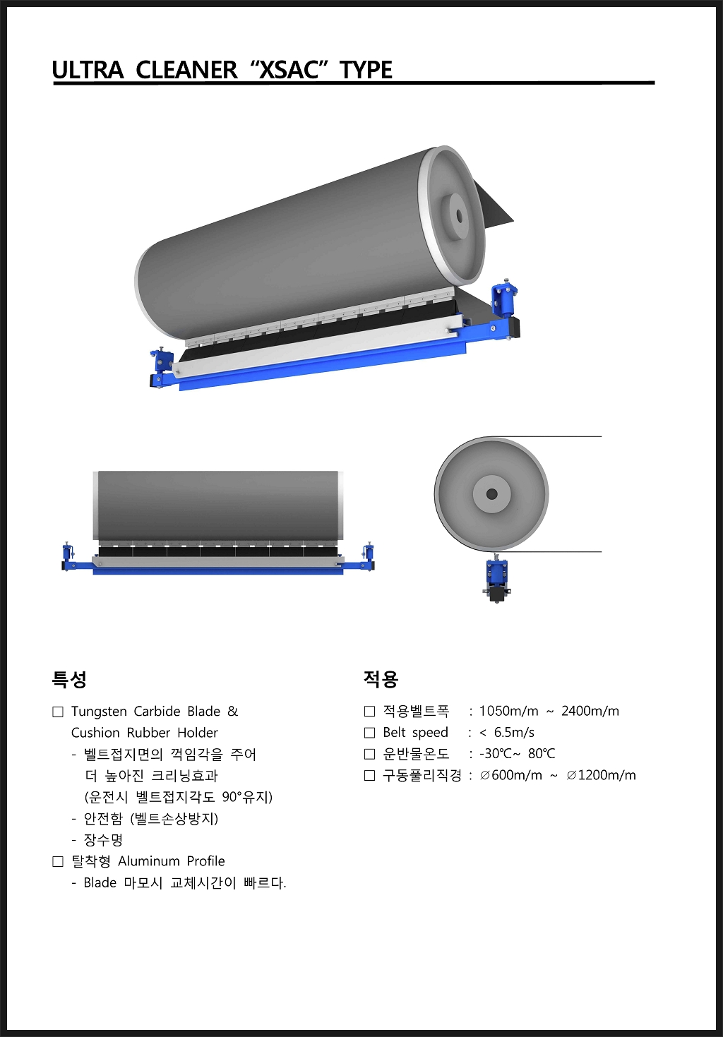 울트라 벨트크리너/벨트크린너/BELT CLEANER/2차 벨트크리너/교체가 편리한 벨트 크리너/UC-XSAC TYPE