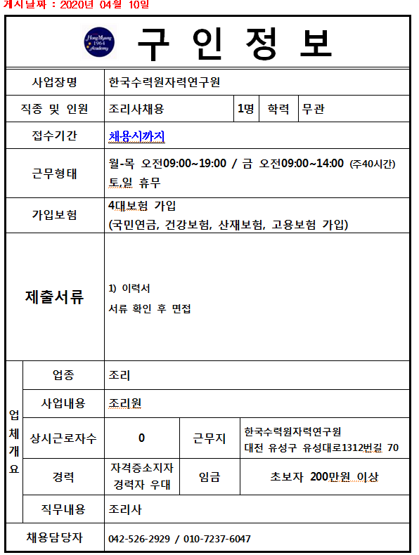 한국수력원자력 연구원 작성시간20.04.10|조회수35 목록 댓글 0 글자크기 작게가 글자크기 크게가 다음검색 현재 게시글 추가 기능 열기 북마크 신고 센터로 신고 댓글 댓글 0 댓글쓰기 답글쓰기 댓글 리스트