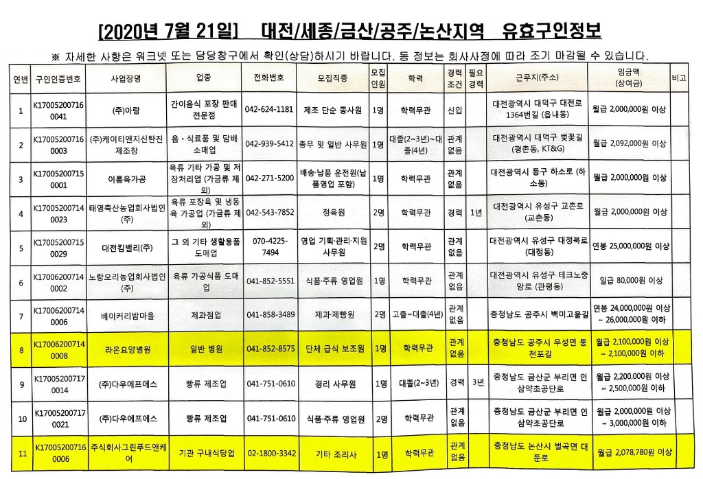 7월21일 유효구인공고 작성시간20.07.28|조회수104 목록 댓글 0 글자크기 작게가 글자크기 크게가 2020년7월21일 유효구인정보.pdf 첨부파일첨부된 파일이 2개 있습니다. jpg 파일 20200728_122441.jpg 다운로드 pdf 파일 2020년7월21일 유효구인정보.pdf 다운로드 다음검색 현재 게시글 추가 기능 열기 북마크 신고 센터로 신고 댓글 댓글 0 댓글쓰기 답글쓰기 댓글 리스트