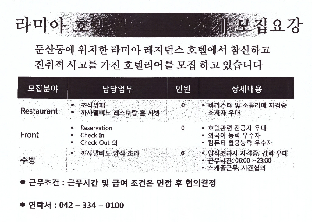 라미아호텔에서 진취적인 호텔리어를 모집합니다. 작성시간15.12.24|조회수34 목록 댓글 0 글자크기 작게가 글자크기 크게가 다음검색 현재 게시글 추가 기능 열기 북마크 신고 센터로 신고 댓글 댓글 0 댓글쓰기 답글쓰기 댓글 리스트