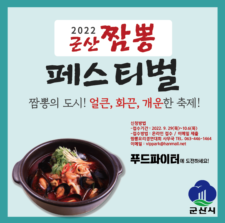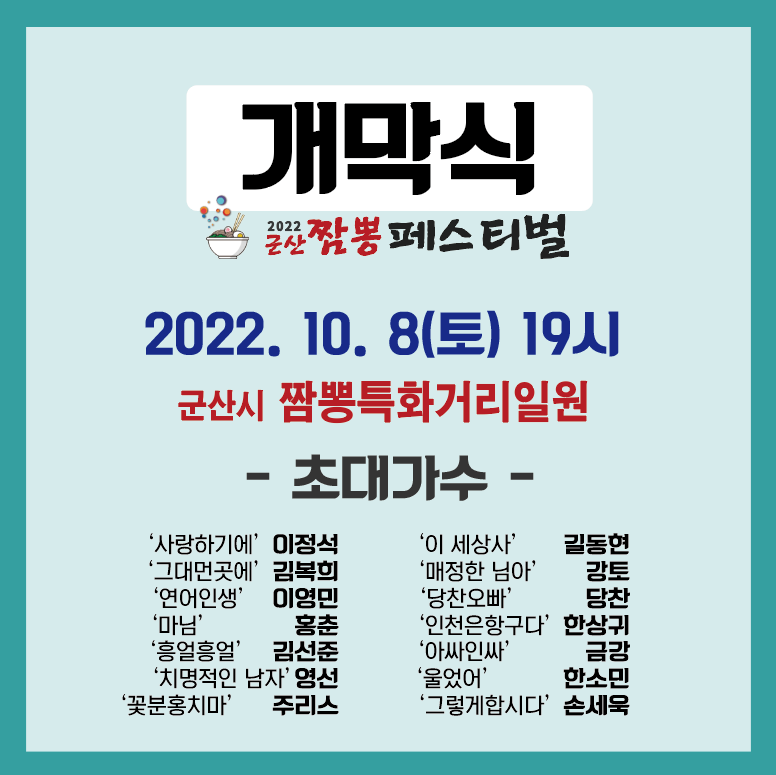 2022군산짬뽕페스티벌 10.8(토)~9(일 작성자박웅재 Park Woongjae|작성시간22.09.30|조회수105 목록 댓글 0 글자크기 작게가 글자크기 크게가 다음검색 현재 게시글 추가 기능 열기 북마크 공유하기 신고 센터로 신고 댓글 댓글 0 댓글쓰기 답글쓰기 댓글 리스트