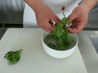 쑥갓은 금방 시들어서 물에 담가 두었다가 꺼내서 잎만 때줍니다.