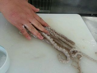 낙지를 소금으로 빠락빠락 씻어줍니다.