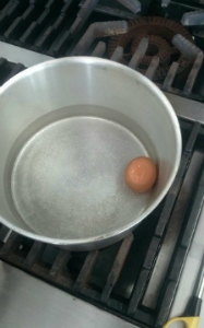 1. 계란을 삶은다. 식빵은 테두리부분을 자른다.