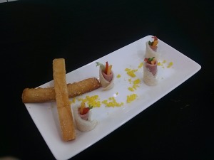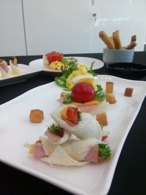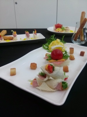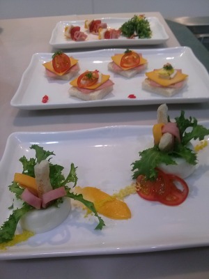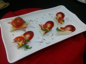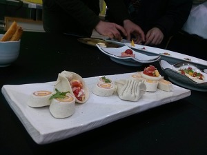 그위에 돌돌만 카나페를 반으로 잘라 이쁘게 담는다.