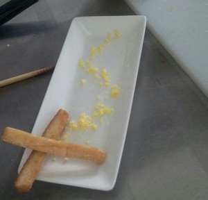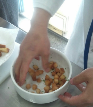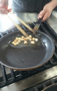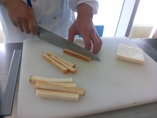 2. 테두리부분을 작게 썰어 기름에 튀긴다.(안 썬것도 길쭉하게 튀긴다.)