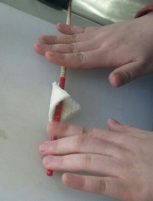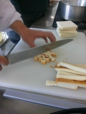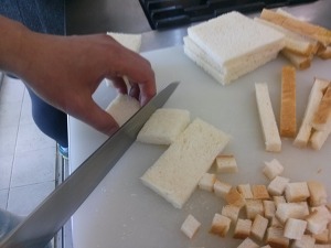 4. 식빵을 4등분하여 밀대로 밀어준다.
