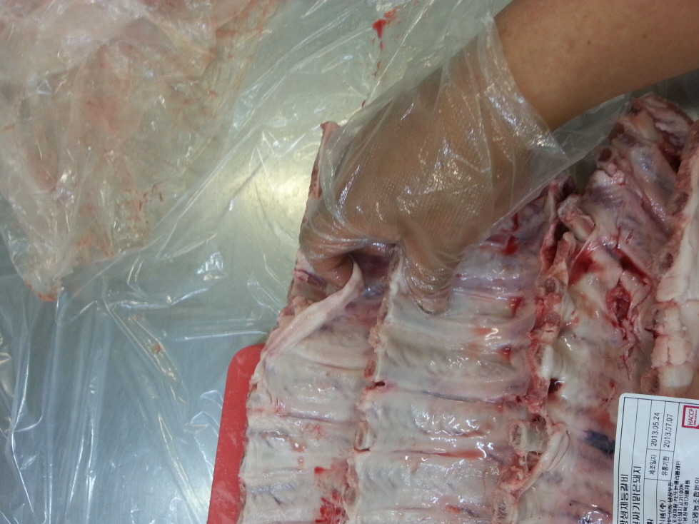 등갈비를 손질할때 근막 제거가 필수죠,, 알글면 찔겨요.
