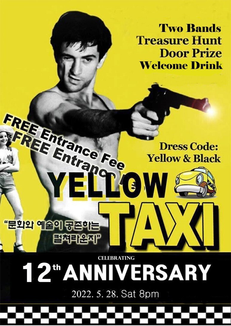 개업 12주년을맞아 5월28일 토요일 Yellow Taxi 12주년 행사에는 한국을 대표하는 최고의 재즈밴드인 "양왕열 쿼텟", 미국인들로 구성된 아메리칸 정통 어쿠스틱 펑키 듀오 "Double Deuce", Door Prize, Treasure Hunt, Welcome Drink 등 다채로운 행사를 준비 하였습니다!
