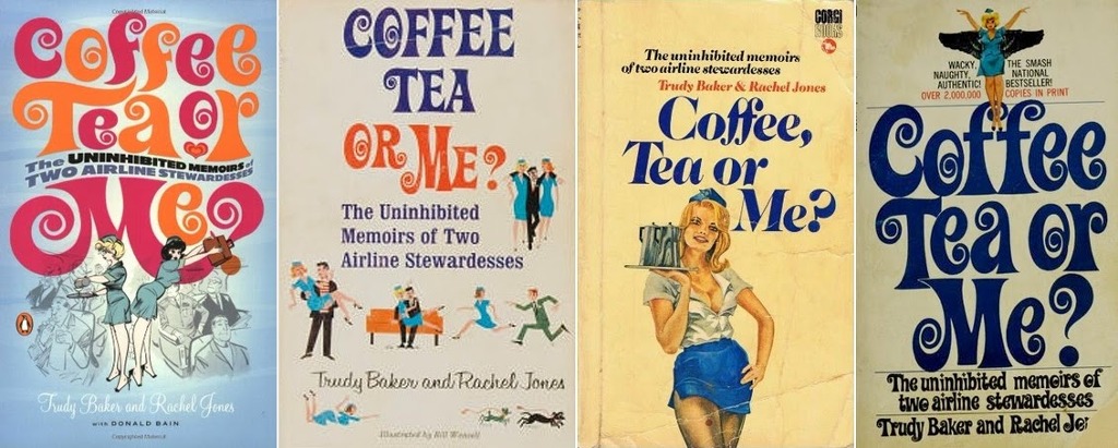 Eastern Airlines 스튜어디스 출신 미국인 여성 2명(Trudy Baker 와 Rachel Jones)이 자신들의 체험담을 토대로 ‘Coffee, Tea or Me?’ 라는 책을 출판했다. 제목부터 묘한 느낌을 자극했다. ‘뭘 드시겠어요? 커피? 차? 아니면 나?’ 이런 의미인데, 기내에서 흔히 음료수를 제공하는 표현인 ‘Coffee or Tea?’ 를 빗댄 표현이다. 그 내용 역시 흥미를 자극하는 스캔들을 소재로 한 내용이 담겨져 있어 큰 반향을 불러 일으키며 선풍적인 인기를 끌게 되었다. 사실 이 책은 2명의 전직 승무원 이야기를 소재로 재구성한 저자 Donald Bain 의 약간의 상상력이 가미되며 실제 체험담으로 보기에는 다소 과장되었다고 할 수 있다.