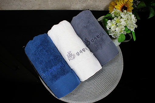 그래서 아무런 문구도 없는 무지타올 에 선물포장도 없이 싼 종이띠지 하나 딸랑 둘러서 출고가 되는것들은 판촉수건 또는 베트남 인도네시아산 수건들이라서 질적으로 많이 떨어지기때문에 주고도 욕먹는다~~ 라고 하셔서 하지 않습니다