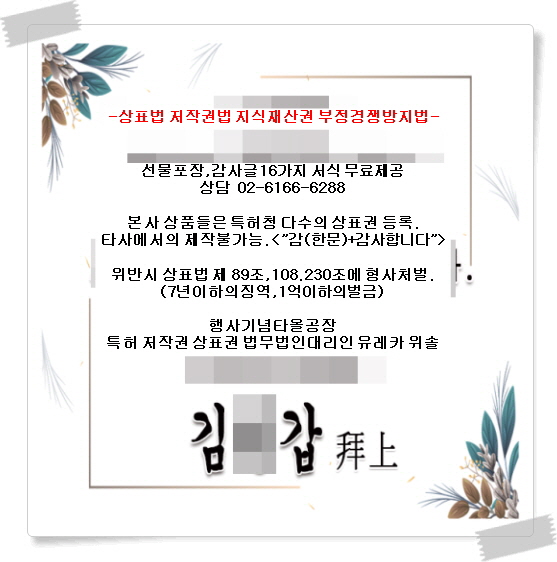 본사의 상품은 특허청 다수의 상표권보유 지식재산권(IP) & 상표법 위반시 법적제재.1억이하 벌금부과