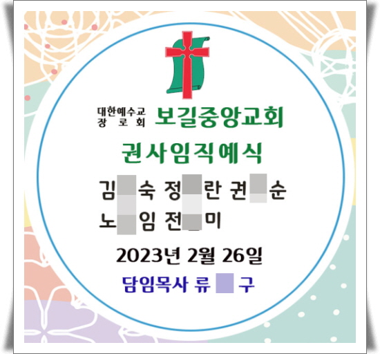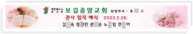 권사 직분임직의 성함을 다 넣어야 하는부분이 있습니다