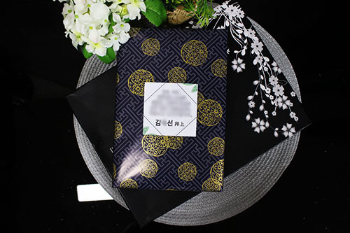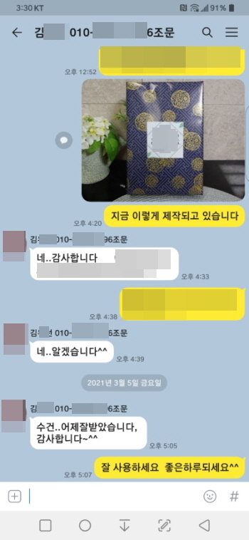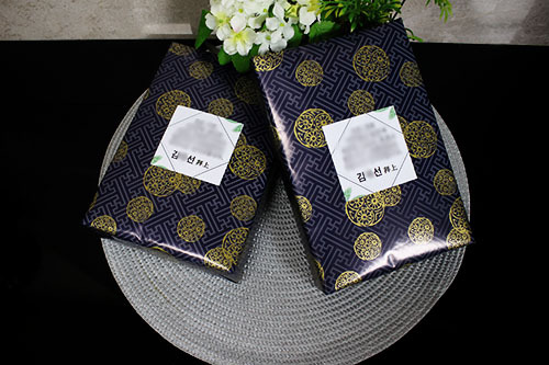 일부러 선물용포장지로 따로 포장도 하고 감사글양식도 서식화 해서 전부 무료 제작후 부착해서 댁으로 발송을 해드렸습니다