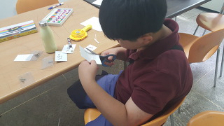 한 시간 전에 먼저 모여 면접 진행방식 등에 대해 이야기 나누고, 각자 잘 할 수 있는 역할을 나누었습니다. 명찰만들기, 차 메뉴판 만들기, 면접 장소 준비하기 등 각자 할 일을 나눴습니다. 메뉴판 만들기는 건희, 명찰 만들기는 민준, 대훈, 면접장소 준비는 해민, 지석, 승훈이가 맡았습니다. 시간이 촉박했지만 아이들은 야무지게 자신의 역할을 다했습니다. 준비를 마치고 나서는 면접자인 선생님별로 롤링페이퍼 형식의 감사편지를 준비 했습니다.