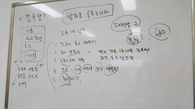 사전에 복지관 내 작은도서관인 꿈자람 책놀이터 네이버 밴드로 참여아동을 모집했습니다. 물론 어머님들이 아이들에게 참여하고 싶은지 물어보고 신청하셨겠지만, 아이들이 100% 자발적으로 참여를 신청한지는 확실치 않았습니다. 당사자 면접에 대한 이야기를 나누기 전에 우선 방화동 골목놀이터에 대한 아이들의 기대를 나눠야 했습니다.