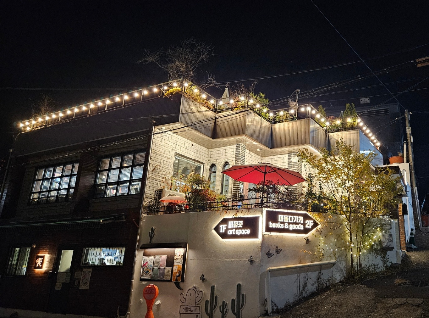 밤을 밝히는 불빛과 아기자기한 소품, 공간 그리고 책이 있는 좋은 곳이었습니다)
