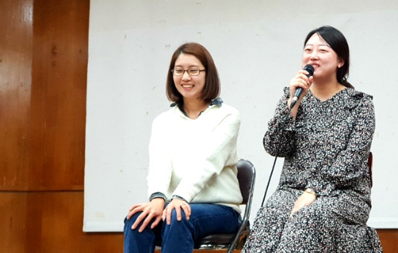 2018년 구슬 사례관리 강좌에서 최정아 선생님과 김혜진 선생님의 발표 뒤 질문에 답하는 모습