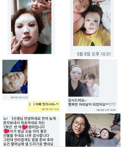 마스크 팩 한 장을 통해 가족들 사이에 웃음과 행복이 넘쳐났을 모습이 그림처럼 떠올랐습니다.