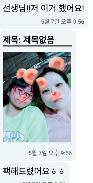선생님을 통해 전달받은 첫 번째 인증샷이었습니다. 친구가 직접 회신을 해줬다고 합니다.