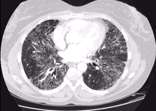 폐기능검사에서는 폐확산기능이 감소되고 폐활동량 등 폐용적이 감소하는 제한성 폐기능 장애 소견이 관찰되고, 동맥혈가스분석 검사 상 저산소혈증, 특히 운동 시에 산소농도가 감소되는 것이 특징입니다.