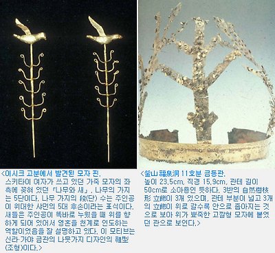 | ▲ 고대 동북 아시아인들(퉁구스인=동이=동호)의 '샤먼'신앙의식이 반영된 스카타이의 왕관 | |