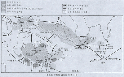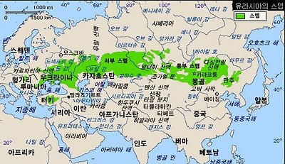 | ▲ 스키타이(훈.흉노.돌궐.몽골) 발원지(만주와 몽골)와 이동루트로써 초원 스텝루트 | |