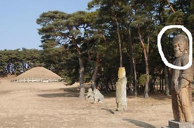 | ▲ 경주의 괘릉 무인석 - 얼굴모양이 중앙 아시아인 - 아시아에서 서진한 스키타이족(흉노)이 유럽인들과 피를 섞여 동진해왔음을 알 수 있다. | |